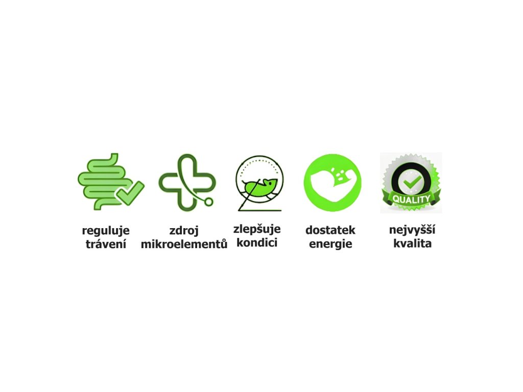 Bylinkové klasy byly vyvinuty tak, že vše cenné pro králíky a hlodavcepochází z přírody. Odborné posudky potvrzují nejvyšší kvalitu pečlivě vybraných surovin a příznivý vliv na kondici drobných savců.