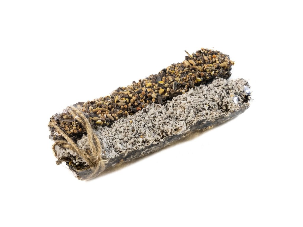 Složení: arašídy, mouční červi, pampeliška, jitrocel jitrocelový, kokosové vločky, lněné semínko, kopřiva, echinacea, světlice barvířská, čirok, jetel, konopná semena, vojtěška, máta, černá řepka, list břízy, meduňka, slunečnice loupaná, proso, bílá rýže, lipový list, černá řepka, neloupaná rýže, pohanka obecná, měsíček lékařský, konopná vláknina, bramborový škrob.