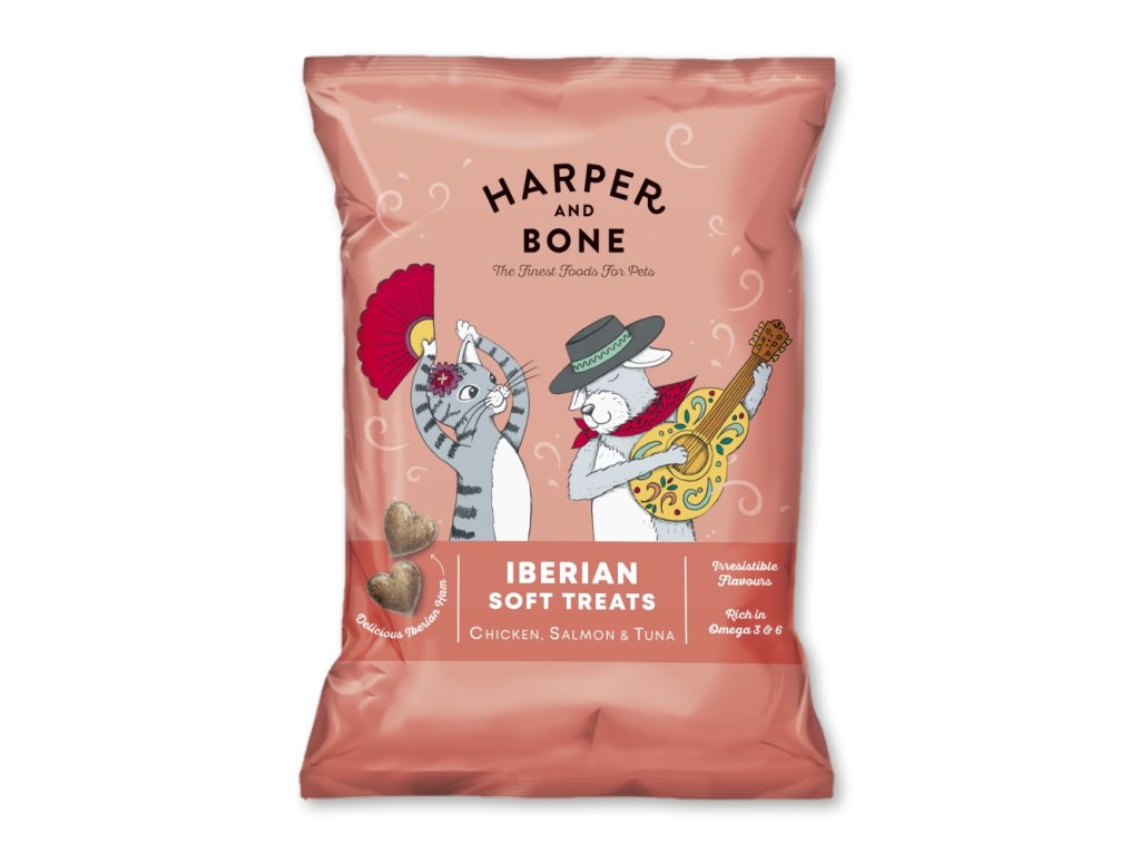 Lahodné pamlsky z iberské šunky pro psy a kočky s kuřetem, lososem a tuňákem.