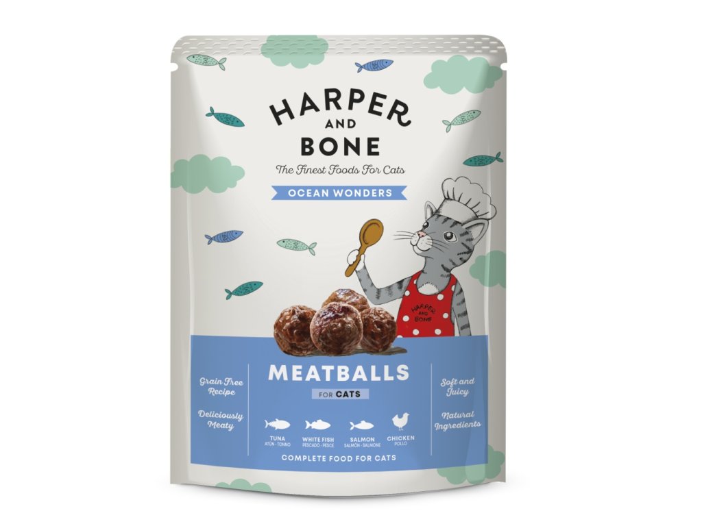 Kompletní mokré krmivo ve tvaru masových kuliček pro kočky všech plemen.
