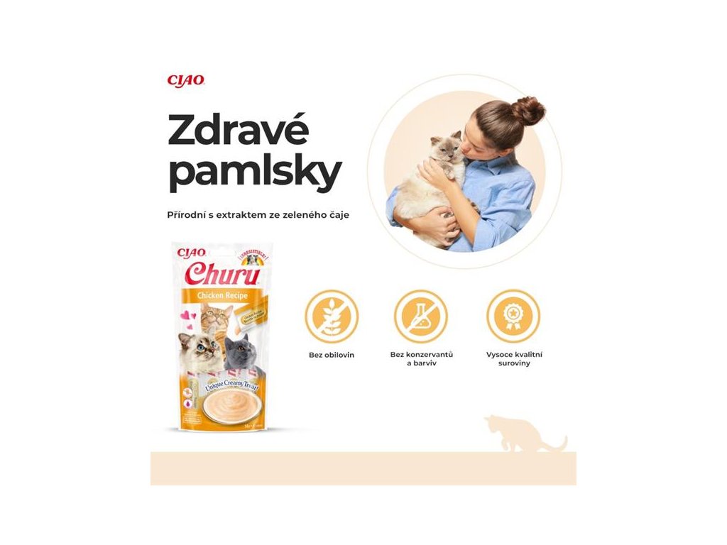 Churu masové pyré pro kočky s kuřecím z farmářského chovu.Šťavnaté, krémové a extra lahodné masové mini kapsičky bez obilovin.Neodolatelně chutné grain free masové pochoutky na...