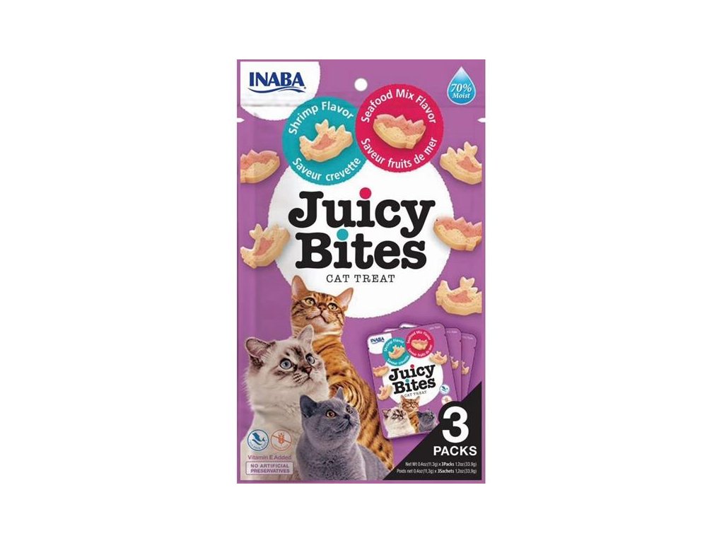 Pamlsky Inaba Juicy Bites ve dvou příchutích – krab a hřebenatka – jsou vláčné, měkké, přirozeně chutné a hlavně zdravé. Vyrobeny jsou z pravého tuňáka a kuřat chovaných na...