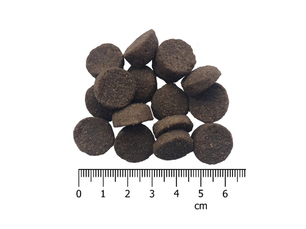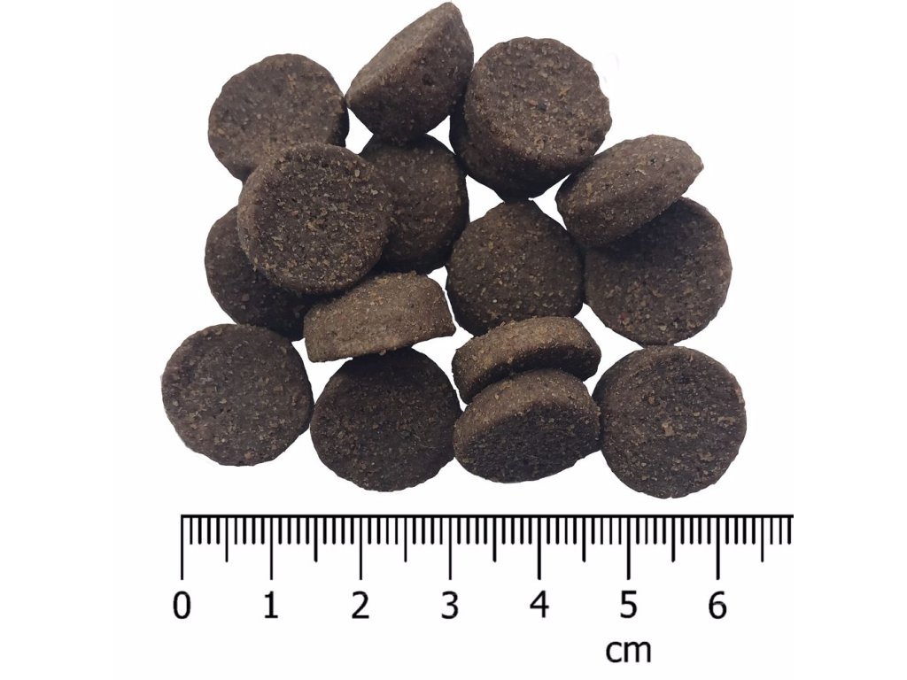 Analytické složky: Protein 27 %, hrubý tuk 16 %, hrubá vláknina 3,5 %, hrubý popel 8,1 %, vápník 1,3 %, fosfor 1,0 %, vlhkost 10 %.