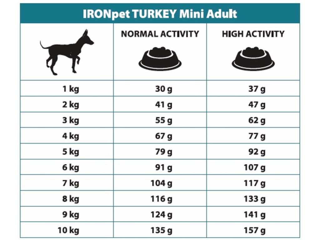 Doporučené denní dávkování (viz tabulka): Krmné dávky jsou orientační, je třeba přizpůsobit je individualitě a temperamentu psa. Nutno zabezpečit celodenní přístup k čerstvé pitné vodě.
