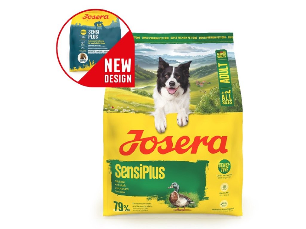 Vývážená receptura Josera SensiPlus byla speciálně vyvinuta pro potřeby psů s citlivým zažíváním. Proto toto dietní krmivo obsahuje cenné přísady podle nejvyšších nároků na chuť a kvalitu. Obsahuje jemně zpracované kachní a drůbeží maso. Proto je toto prémiové krmivo lehce stravitelné, ulehčuje zažívacímu systému a setkává se s vysokou přijímavostí. Nižší obsah energie vysoce kvalitního suchého krmiva je přizpůsoben potřebám psů, kteří jsou normálně aktivní. Biotin se pak postará o zdravou kůži a lesklou srst. Josera SensiPlus neobsahuje žádná umělá barviva, aromata, konzervační látky, ani geneticky upravované suroviny. Jako všechny produkty od Josera neobsahuje přísady, které mohou způsobovat alergie, jako jsou pšenice, cukr, sója nebo mléčné produkty. Kvalita všech přísad je neustále kontrolována. Kvůli zachování cenných vlastností, jsou granule baleny do praktického, znovu uzavíratelného sáčku AromaSafe.Josera SensiPlus v přehledu:- Prémiové suché krmivo pro dospělé psy s citlivým zažíváním - Vysoká přijímanost: jemné zpracování surovin té nejvyšší kvality se postará o ulehčení zažívacímu systému- S kachnou a drůbežím masem: lehký a chutný zdroj bílkovin, také pro vybíravé pejsky - Vysoký podíl biotinu: podporuje zdravou kůži a lesklou srst- Nižší obsah energie: přizpůsobený potřebám normálně aktivních psů - 100% bez barviv, aromat a konzervačních látek, bez genetických úprav- Neobsahuje přísady, které mohou způsobovat alergie: pšenice, sója, cukr a mléčné produkty - Vyrobeno v Německu: kontrolovaná kvalita ve vlastní laboratoři Josera- Vysoká akceptovatelnost: chutné granule, lehké ke žvýkání a dobře stravitelné- Ochrana aroma: znovuuzavíratelný sáček pro zachování chuti a cenných živinSložení: sušené drůbeží bílkoviny (drůbeží 24,0 %, kachní 4,0 %); celozrnná kukuřice; rýže; drůbeží tuk; řepná vláknina; hydrolyz. drůbeží bílkoviny; minerální látky; mletý kořen čekanky (přírodní zdroj inulinu).