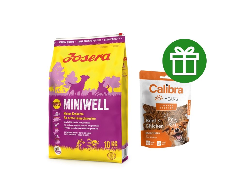 Josera MiniWell neobsahuje žádná umělá barviva, aromata, konzervační látky, ani geneticky upravované suroviny. Neobsahuje přísady, které mohou způsobovat alergie, jako jsou pšenice, cukr, sója nebo mléčné produkty. Kvalita všech přísad je neustále kontrolována. Kvůli zachování cenných vlastností, jsou granule baleny do praktického, znovu uzavíratelného sáčku AromaSafe.Josera MiniWell v přehledu: