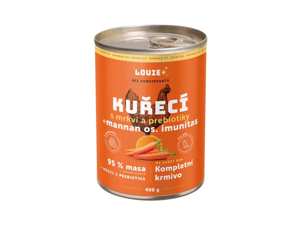 Jako všechny konzervy z řady Mannan os. Imunitas je i tato obohacená prebiotiky – zdraví prospěšnou rostlinnou vlákninou – ve formě mannanoligosacharidů (MOS) a fruktooligosacharidů (FOS), které posilují střevní mikroflóru. Krmivo tím přispívá k normální funkci trávicího a imunitního systému.