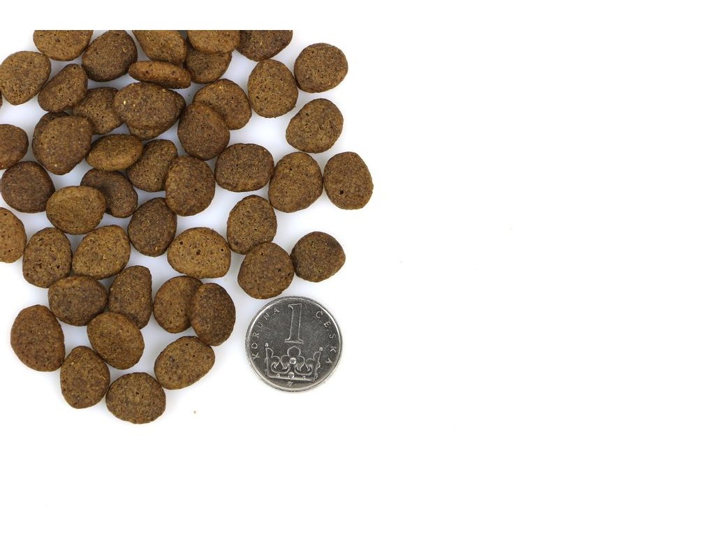Hmotnost krmné dávky uvedená na obalu krmiva je orientační. Individuálně závisí na plemeni, věku, aktivitě, temperamentu, zátěži, genetických faktorech. Nepřekrmte svého psa v důsledku toho, že se necháte ovlivnit jeho chutí k jídlu a dychtivostí po granulích. Překrmení je nejčastější příčinou poruchy trávení.