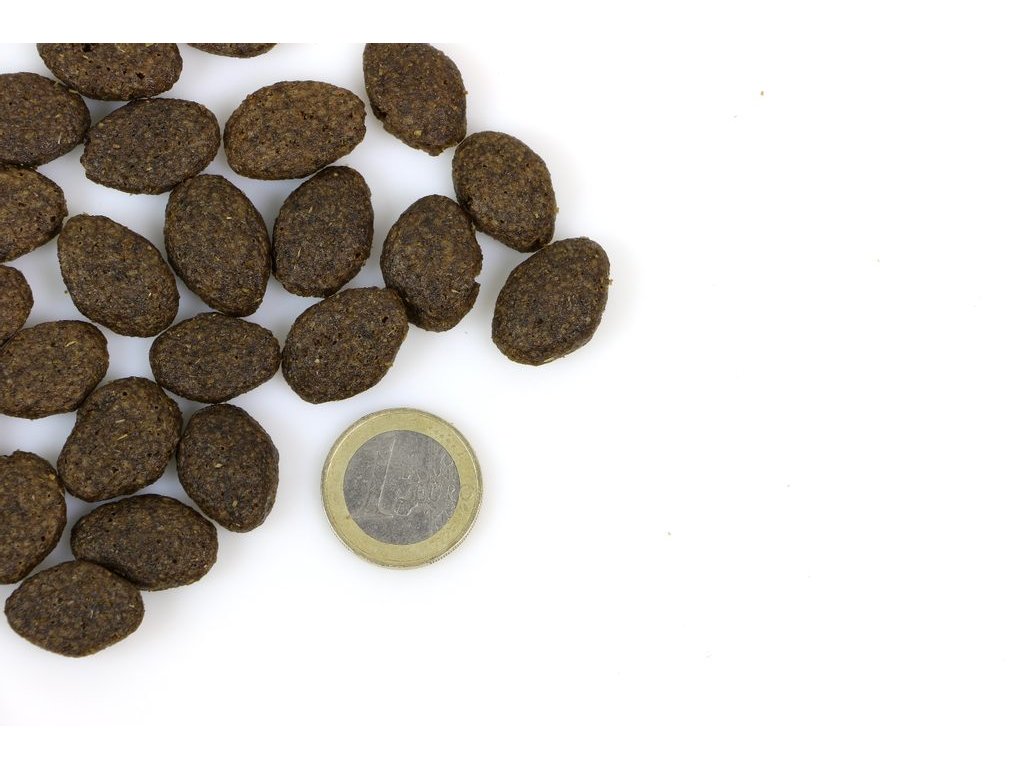 Hrubá bílkovina 27 %, hrubé tuky 15 %, hrubá vláknina 3,5 %, popeloviny 7 %, vlhkost 8,5 %, vápník 1,02 %, fosfor 0,69 %, Omega 3 2,85 %, Omega 6 1,19 %.