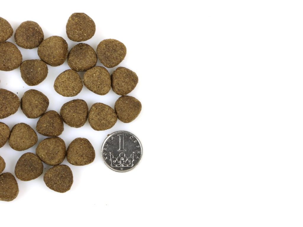 Složení: Sušené jehněčí, rýže, ječmen, oves, pivovarské kvasnice, kuřecí tuk, řepné řízky, jehněčí vývar, minerály, vitaminy, extrakt z juky Schidigera.