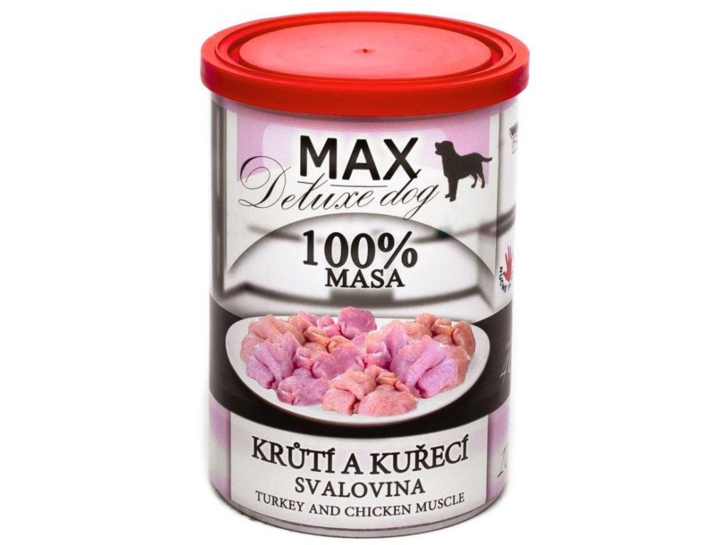Max Deluxe Dog konzerva Krůtí a kuřecí svalovina 400g