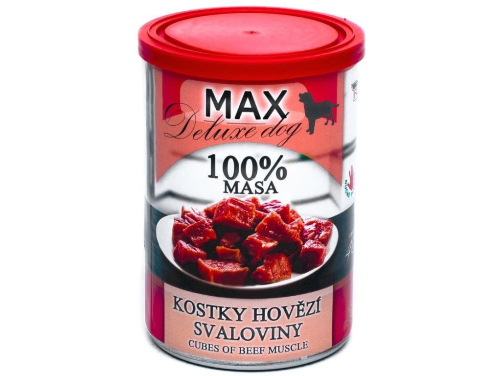 Konzerva řady MAX je vhodná pro všechny věkové kategorie a všechna plemena.