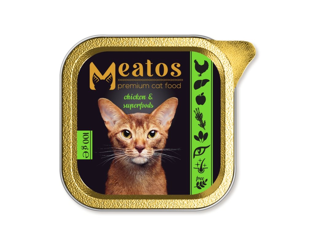 Meatos Cat Chicken & Superfood navíc obsahuje inulin, který podporuje trávení a posiluje imunitní systém.