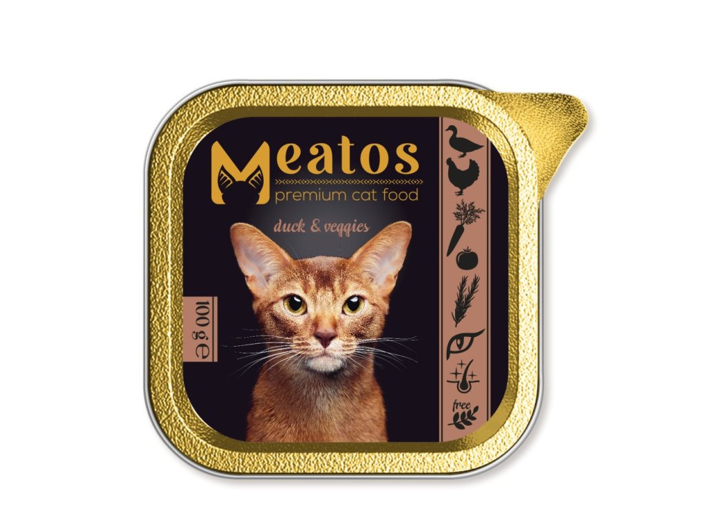 Meatos Cat Duck & Vegetable kvalitní vanička pro dospělé kočky, která zaručeně uspokojí i ty nejnáročnější chlupaté gurmány.