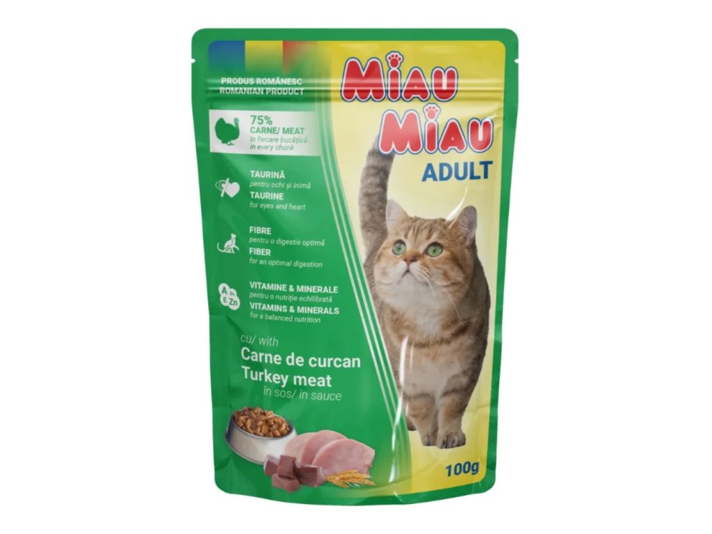 MIAU MIAU kapsička pro kočky s krůtím masem v omáčce.