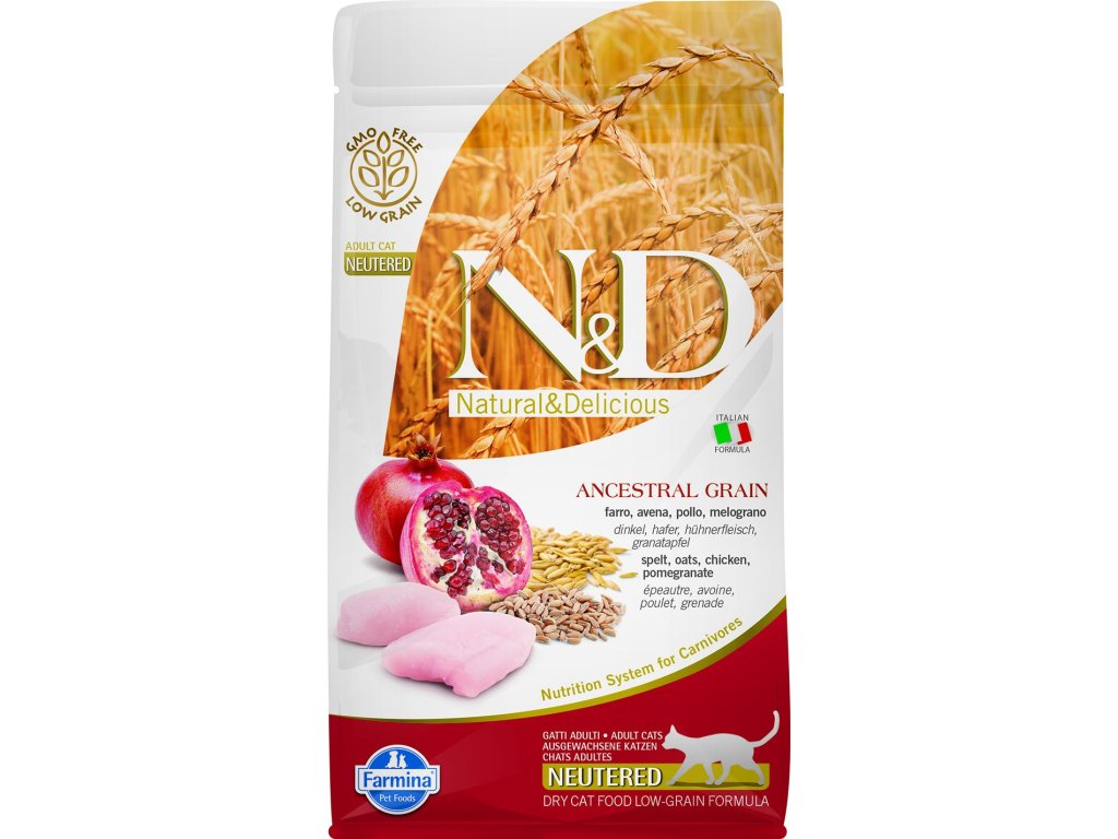Receptura s kuřecím masem a granátovým jablkem pro kastrované dospělé kočky.