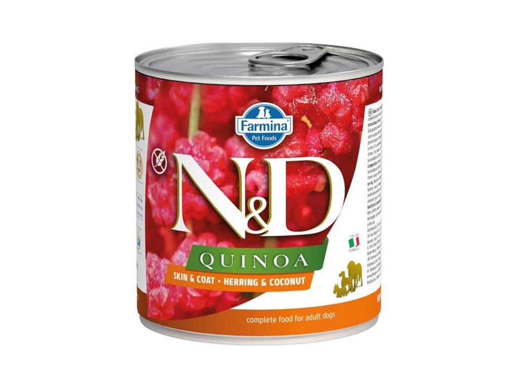 Farmina N&D Quinoa Herring & Coconut je krmivo pro zvláštní účely výživy určené k podpoře omezení intolerance určitých komponentů a živin.