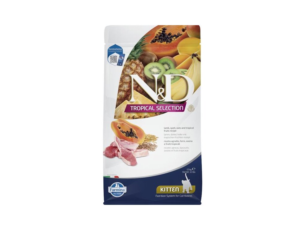 Řada N&D Tropical selection v sobě kombinuje kvalitní zdroje živočišných bílkovin, vysoce kvalitní obiloviny a chutné tropické ovoce pro nasycení vašeho zvířecího kamaráda.Granule řady Tropical selection navazují na řadu nízkoobilných krmiv Ancestral Grain, v nichž je maso doplněno ovsem a špaldou. Tyto „staré obilniny“ se vyznačují nízkým glykemickým indexem a tím prodlužují dobu sytosti. Chutnost krmiva zvyšuje přidané tropické ovoce, jako je papája, mango, kiwi, ananas a banán, bohaté na přírodní antioxidanty a vitamíny.
