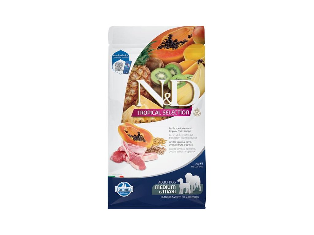 Kompletní nízkoobilné krmivo s kuřecím masem a tropickým ovocem pro dospělé psy malých plemen. Řada N&D Tropical Selection v sobě kombinuje kvalitní zdroje živočišných bílkovin, vysoce kvalitní obiloviny a chutné tropické ovoce pro nasycení vašeho zvířecího kamaráda.Granule řady Tropical Selection navazují na řadu nízkoobilných krmiv Ancestral Grain, v nichž je maso doplněno ovsem a špaldou. Tyto „staré obilniny“ se vyznačují nízkým glykemickým indexem a tím prodlužují dobu sytosti. Chutnost krmiva zvyšuje přidané tropické ovoce, jako je papája, mango, kiwi, ananas a banán, bohaté na přírodní antioxidanty a vitamíny.