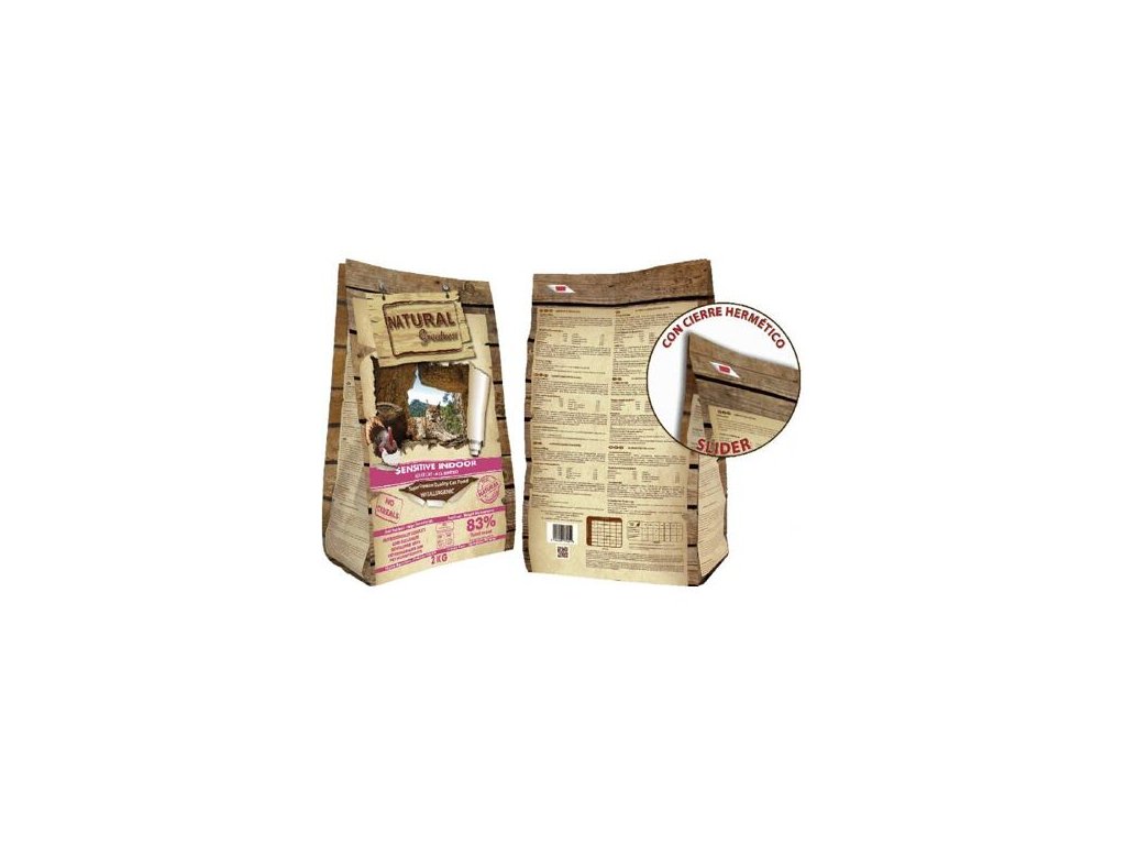 Natural Greatness Sensitive Indoor Cat je kompletním krmením superprémiové kvality pro dospělé kočky všech plemen.