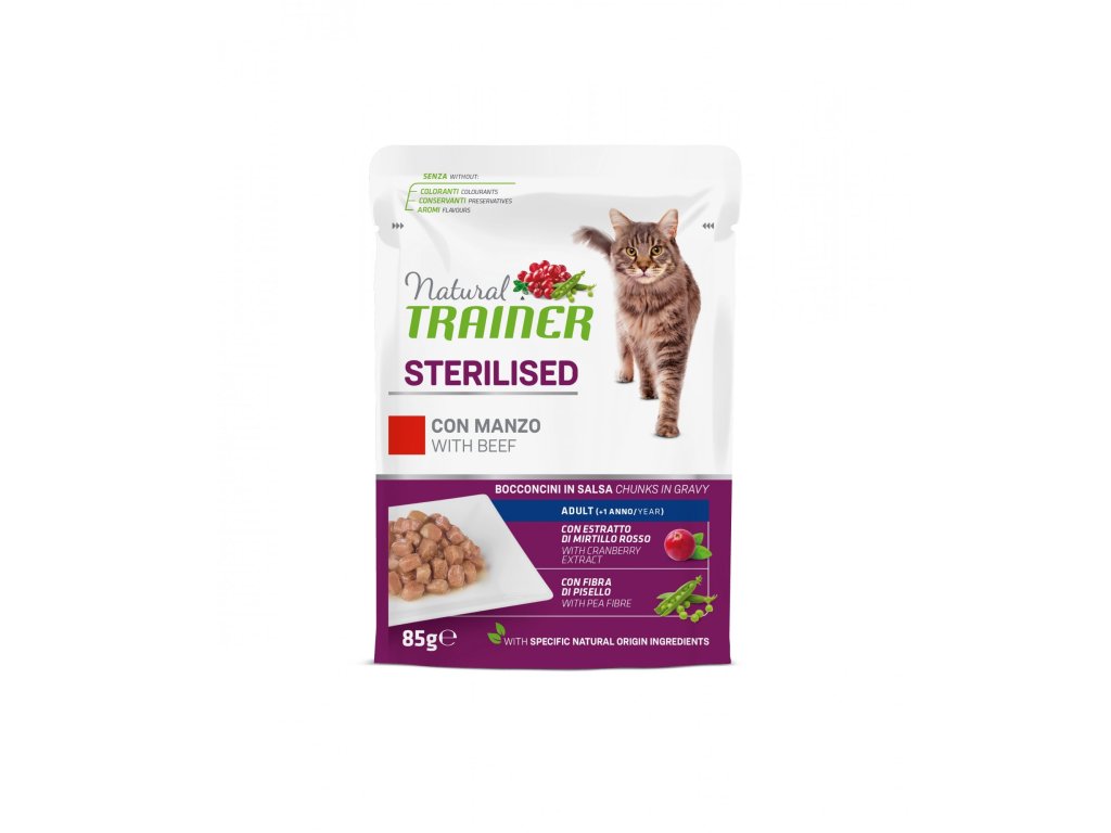 Dopřejte své kočce nejvyšší kvalitu v podobě lahodné kapsičky od Natural Trainer. Ingredience obsažené v kapsičce Natural Trainer jsou přírodního původu, aby vaší kočce přinesly zdravotní výhody. Bílkovinovou složkou je zde hovězí maso, které má vysokou biologickou hodnotu, nasycené tuky, železo, fosfor, zinek, vitaminy skupiny B (zejména B12), thiamin a riboflavin. Bez přidaných konzervačních látek, umělých barviv a dochucovadel. Určeno pro dospělé kastrované kočky.