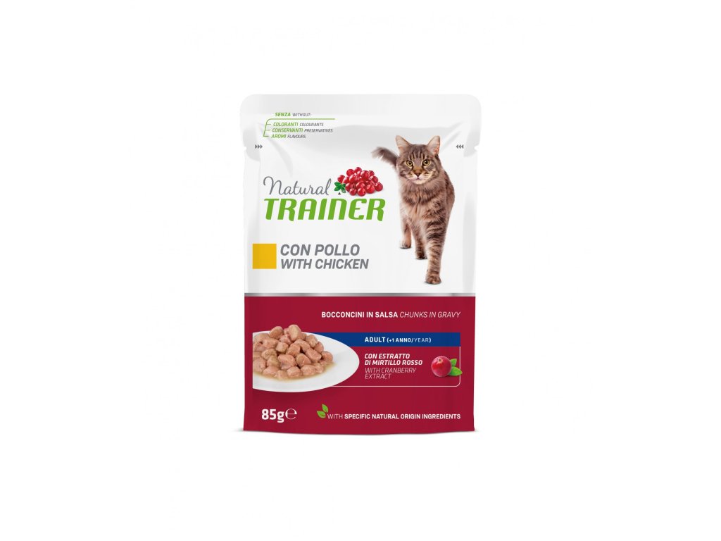 Dopřejte své kočce nejvyšší kvalitu v podobě lahodné kapsičky od Natural Trainer. Ingredience obsažené v kapsičce Natural Treiner jsou přírodního původu, aby přinesli zdravotní výhody vaší kočce. Bílkovinovou složkou je kuřecí maso, které je bohaté na esenciální aminokyseliny, jako je tryptofan, se sníženým obsahem tuku a soli. Obsahuje vitaminy skupiny B, zejména thiamin, riboflavin a niacin a také minerální látky jako fosfor, hořčík, železo, zinek, vápník a selen. Strava vhodná pro dospělé kočky.