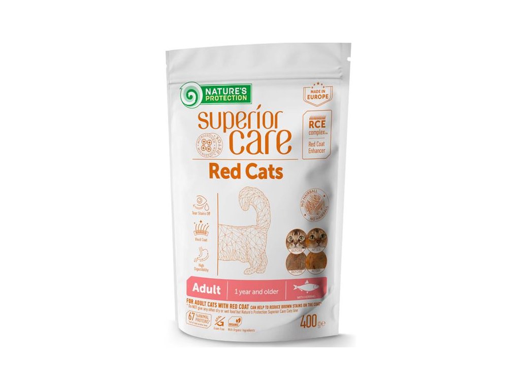 Speciální grain-free receptura pro dospělé kočky všech plemen s hnědou a rezavou srstí, která chrání a zvýrazňuje červený pigment srsti a podporuje zdraví kůže zevnitř. Kompletní složení dodá vašemu kočičímu mazlíčkovi všechny potřebné živiny, zajistí dokonalý vzhled srsti a pomůže předejít vzniku hnědých skvrn ze slz u očí a ze slin kolem tlamy. Krmivo je vyrobené z vybraných surovin nejvyšší kvality a je díky tomu velmi chutné a vysoce stravitelné.