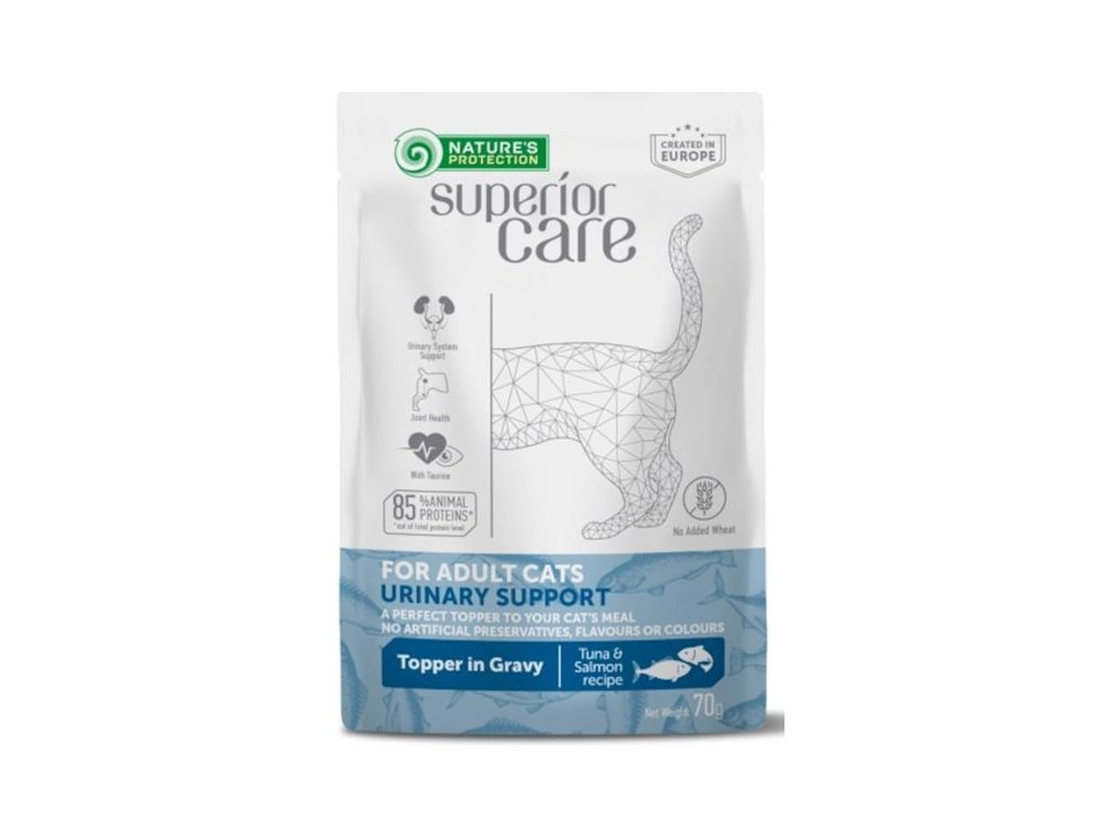 Doplňkové vlhké krmivo ve formě praktické kapsičky je ideální pro citlivé dospělé kočky a podporu zdraví jejich močového ústrojí. Tuňák s lososem poskytují vysoce kvalitní bílkoviny a esenciální omega-3 mastné kyseliny, které podporují zdraví kůže a celkovou vitalitu a zároveň snižují zánětlivost. Brusinky pomáhají předcházet infekcím močových cest a udržovat vyváženou hladinu pH moči. Kapsička může posloužit jako chutný a výživný topper (poleva) na granule pro zlepšení trávení, zvýšení hydratace a celkovou podporu zdraví.