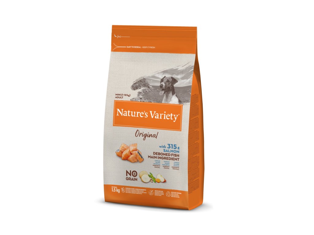 Kompletní krmivo v podobě granulí prodospělé psy malých plemen do 10 kg, kteréobsahuje 21 % norského lososabez kostí a je obohaceno o vybrané rostlinné složky. Mezi ty patří batáty, hrách a cizrna, které krmivu dodávají sacharidy. Krmivo prokaždodenní výživu, kompletní a vyvážené složení s koordinovaným obsahem energie a živin. Krmivoneobsahuje obiloviny, a proto je vhodné pro psy s odpovídajícími alergiemi a intolerancemi. K doplnění vyvážené a kompletní receptury jsou v krmivu zpracovány rostlinné suroviny, které mu dodávají vitální látky, minerální látky a vitaminy. Krmivo obsahuje složky, které podporují zdraví kůže a srsti, recepturu s ovocem, zeleninou a dalšími rostlinnými složkami, vlákninu, vitaminy a minerální látky. Zdroj antioxidantů může podpořit normální imunitní systém. Krmivo jebez umělých barviv, aromat a konzervantů.