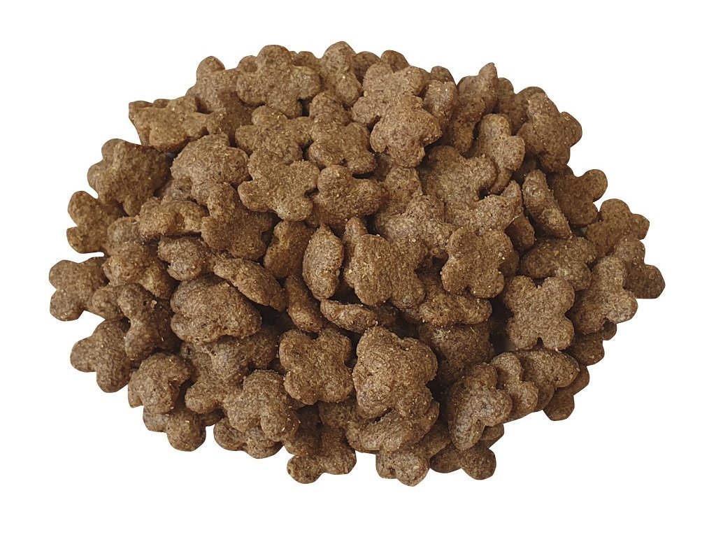 sušené brambory (35%), škvarky (22% z toho 75% hovězí škvarky), drůbeží bílkoviny (hydrolyzované), masová moučka (z toho 6 % z hovězího), drůbeží tuk, hovězí tuk (7 %), bílkoviny ze sušených brambor (3,75%), lignocelulóza (3%), hovězí melasové lupínky, sušené jablečné výlisky, hemoglobin, sušené brusinky (0,5%), chlorid sodný, yucca schidigera (0,05%), čekanka (0,04 %) - zdroj inulinu