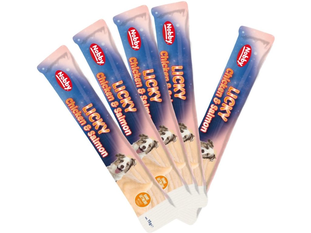 Nobby Starsnack Licky Dog Masové pyré kuře s lososem 5x15g
