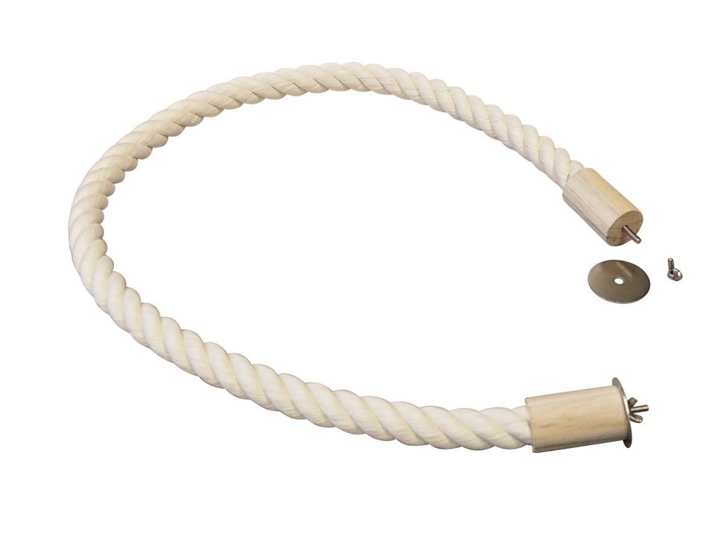 Flexibilní bílé bidýlko z bavlněného provazu. Snadná instalace do klece nebo voliéry. Délka 120cm.