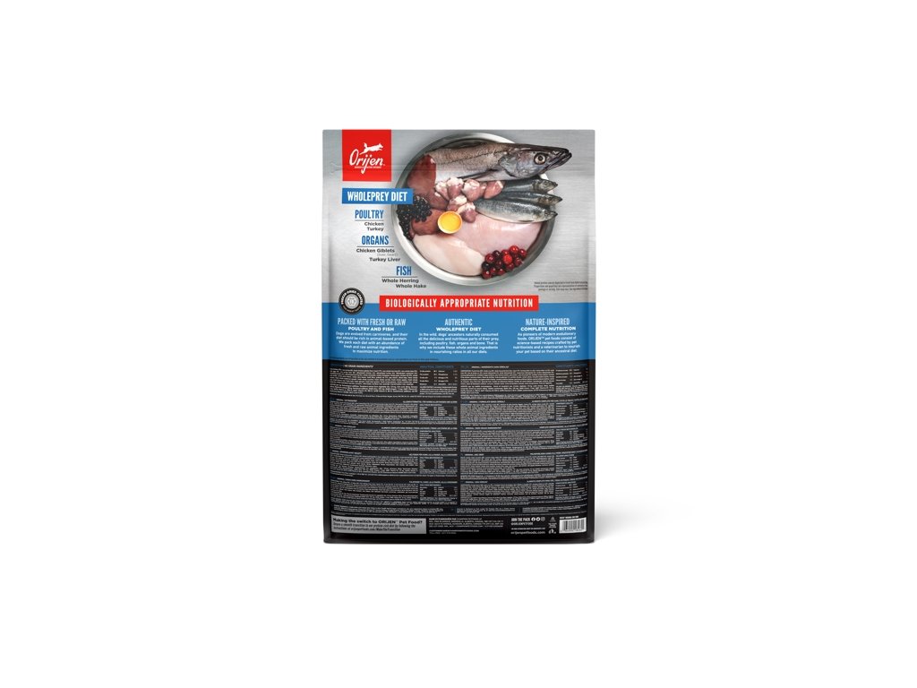 Legendární krmivo Orijen Dog Original obsahuje vysoký podíl proteinů z volně chovaných kuřat, krůt, ryb a vajec z hnízdních chovů.