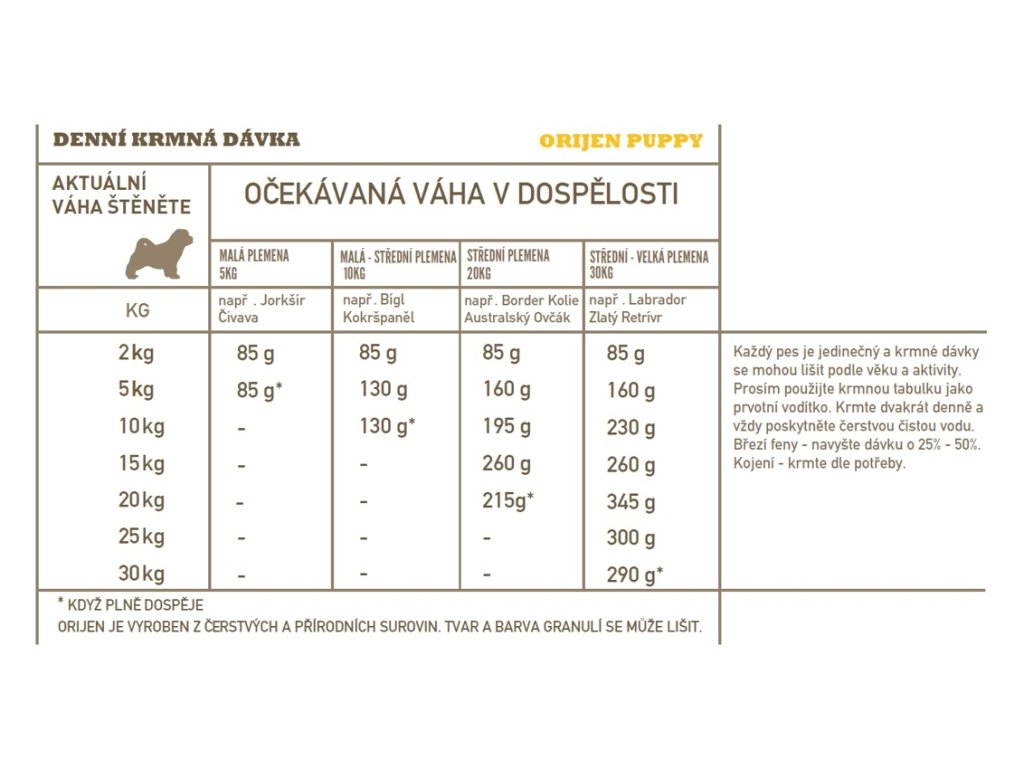 ORIJEN Dog Puppy je biologicky vhodné krmivo pro štěňátka především malých a středních plemen psů. Neobsahuje žádné obiloviny ani další pro psy nevhodné přísady.