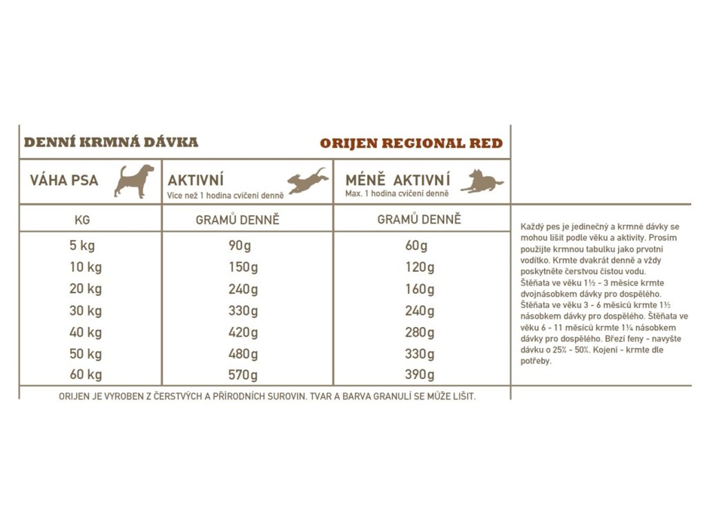 Orijen Dog Regional Red je biologicky vhodné krmivo pro psy všech plemen a všech věkových stádií, které neobsahuje žádné obiloviny ani další pro psy nevhodné přísady.