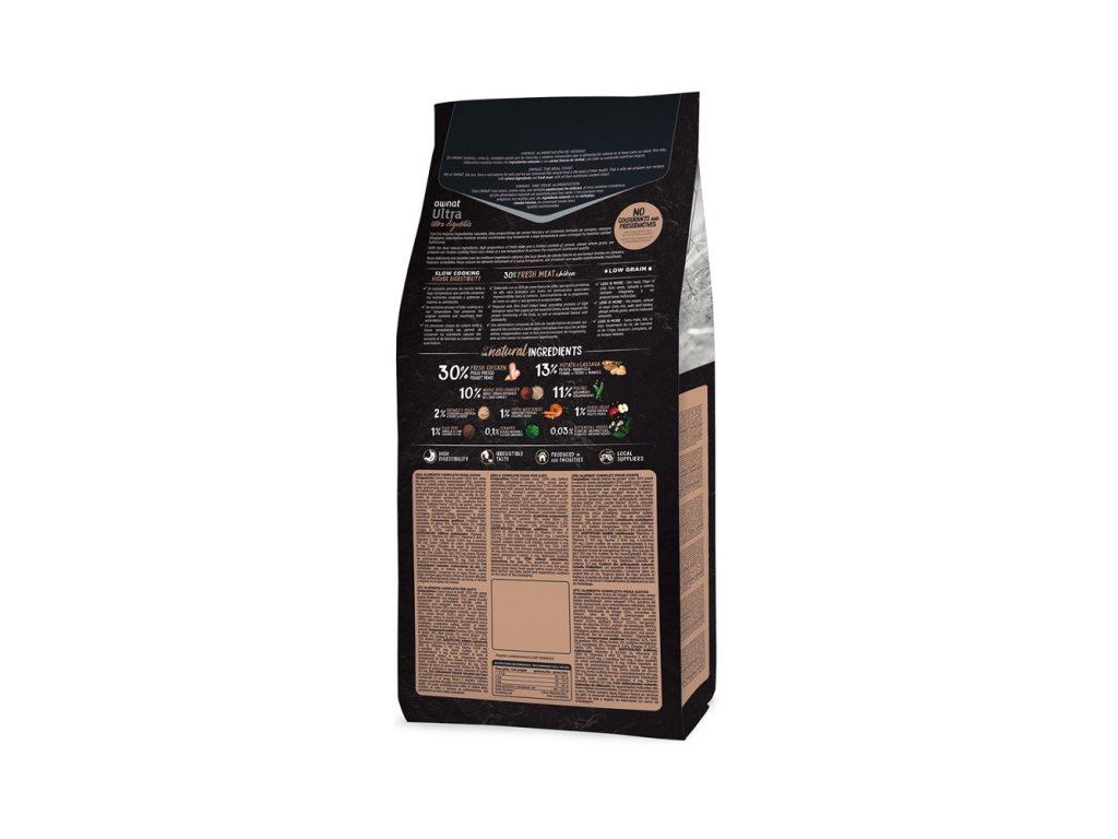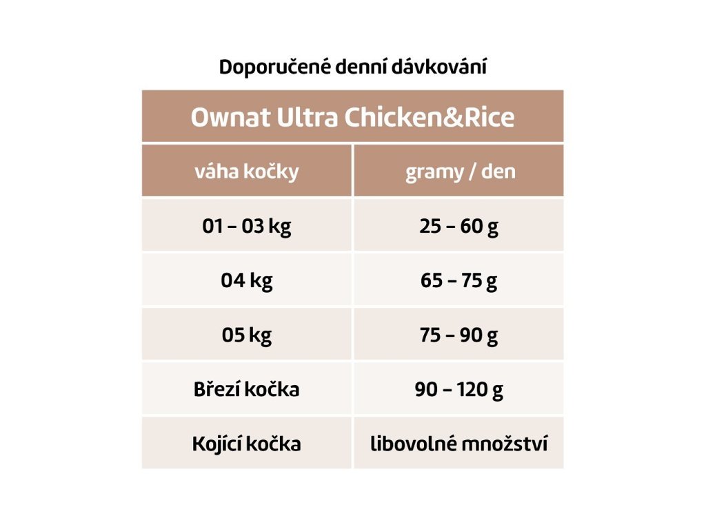 OWNAT ULTRA CAT Chicken & Rice je navrženo tak, aby poskytovalo kočkám potřebné živiny pro jejich každodenní potřeby a přitom podporovalo optimální funkci těla i zdraví trávicího traktu.