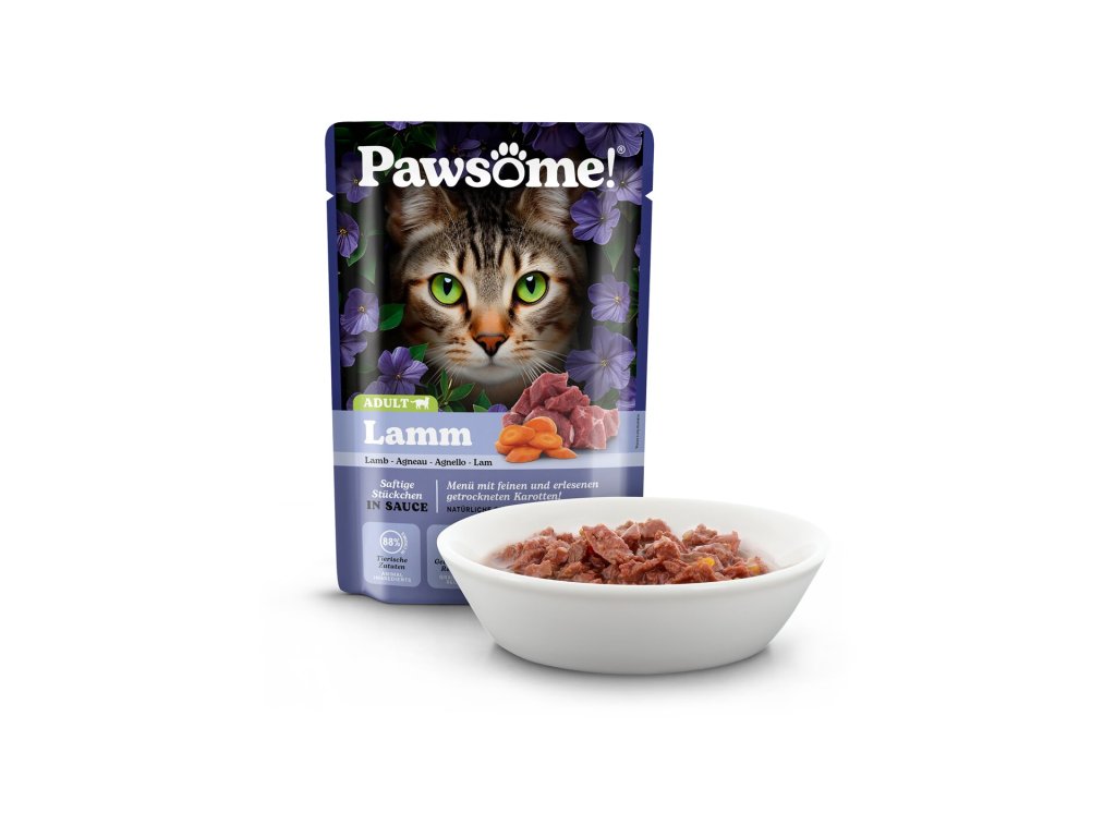 Šťavnaté kousky jehněčího masa s mrkví v lahodné omáčce tvoří kompletní krmivo s vyváženým složením, které přispívá ke spokojenému a aktivnímu životu dospělých koček všech plemen a velikostí. Kočky jsou masožravci, a proto krmivo Pawsome! obsahuje velké množství živočišných bílkovin a nenajdete v něm obiloviny ani přidaný cukr – protože ani jedno do kočičí misky nepatří. Je vytvořeno tak, aby poskytovalo kočkám jedinečný chuťový zážitek a zároveň jim dodalo živiny, nezbytné pro jejich každodenní dobrodružství. kompletní krmivo pro dospělé kočky obsahuje 88 % živočišných složek bez obilovin, přidaného cukru a GMO s taurinem pro správné fungování metabolismu a inulinem pro podporu trávení Taurin pomáhá ke správnému fungování metabolismu a trávení a je nezbytný pro zdravý zrak a správnou činnost srdce. Kočky si nedokáží taurin vyrobit samy, a proto je důležité nabídnout jim stravu, která jim tuto důležitou aminokyselinu poskytne. Čekankový inulin je přírodní prebiotická vláknina, která příznivě ovlivňuje trávení a přispívá k pravidelnému a bezproblémovému vyprazdňování. Složení: maso a vedlejší výrobky živočišného původu (kousky masa 88 %, z toho jehněčí maso 11,6 %), minerální látky, hrachový škrob, hrachová bílkovina, mrkev 0,45 %, čekankový inulin 0,4 %, lignocelulóza, slunečnicový olej Analýza: hrubé bílkoviny 10 %, hrubé oleje a tuky 3,5 %, hrubé popeloviny 2,5 %, hrubá vláknina 0,4 %, vlhkost 81 % Doplňkové látky /kg: vitamin D3 (3a671) 160 I.U./IU/UI, vitamin E (3a700) 100 mg, zinek (3b605) 10 mg, mangan (3b502) 2 mg, měď (3b405) 1,2 mg, jód (3b202) 0,2 mg, taurin (3a370) 520 mg, biotin (3a880) 100 mcg Hmotnost 1 kapsičky: 85 g Doporučené dávkování: Váha kočky Počet kapsiček denně 3 kg 2,5 4 kg 3 5 kg 3,5 6 kg 4 Krmnou dávku přizpůsobte aktivitě, věku, velikosti, plemenu a životnímu stylu vaší kočky. Datum minimální trvanlivosti a číslo šarže najdete na zadní straně obalu. Krmivo skladujte v suchu. Po otevření skladujte v lednici a co nejdříve spotřebujte.