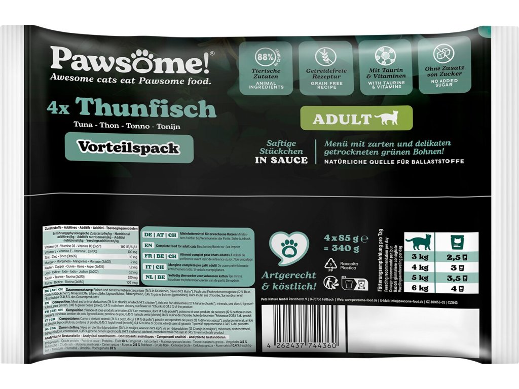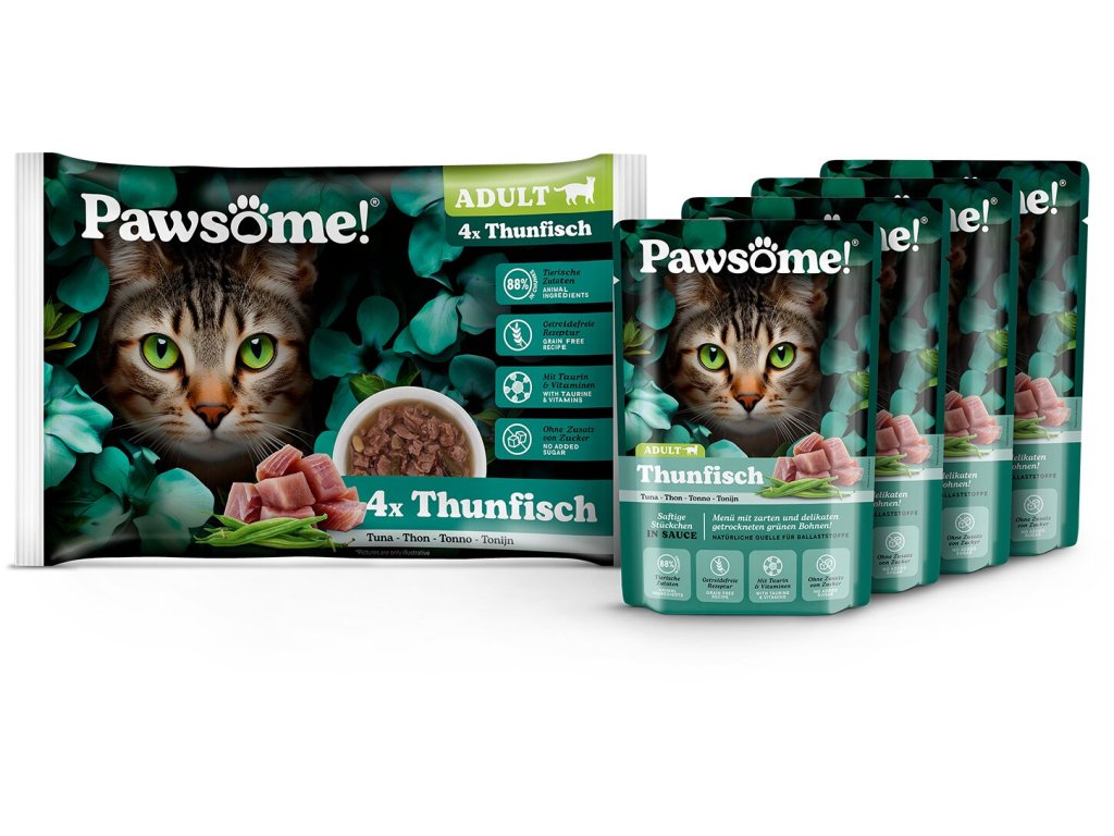 Šťavnaté kousky s tuňákem a zelenými fazolkami v lahodné omáčce tvoří kompletní krmivo s vyváženým složením, které přispívá ke spokojenému a aktivnímu životu dospělých koček všech plemen a velikostí.