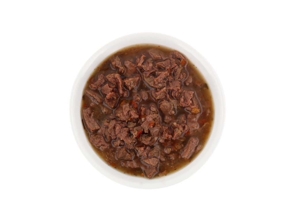 Šťavnaté kousky s telecím masem, rajčaty, tymiánem a rozmarýnem v lahodné omáčce tvoří kompletní krmivo s vyváženým podílem bílkovin, tuků, vitamínů a minerálů, které přispívá k...