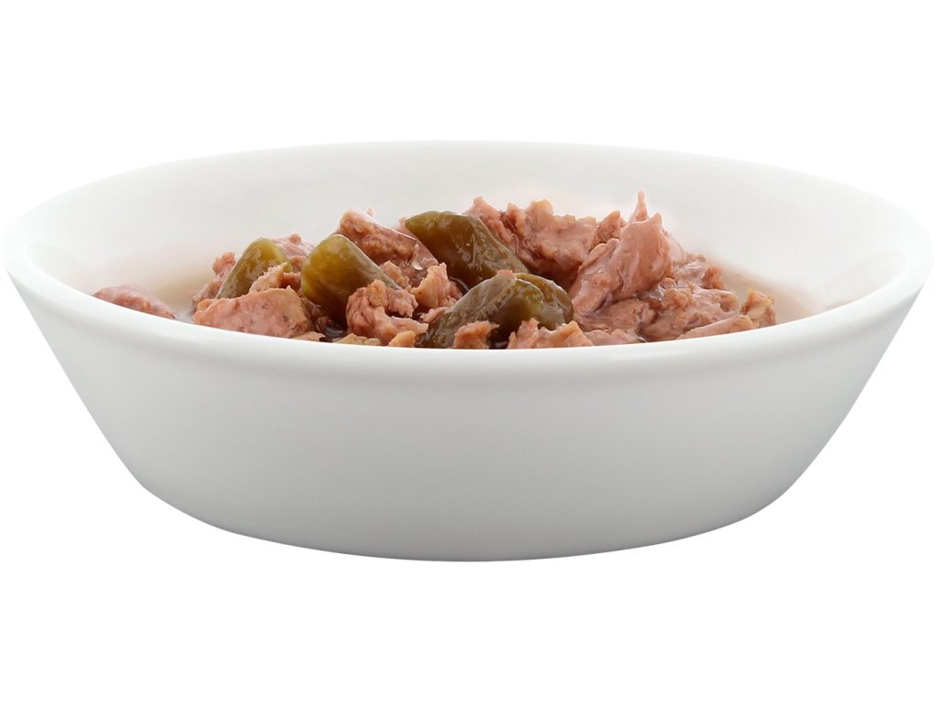 Šťavnaté kousky s tuňákem a zelenými fazolkami v lahodné omáčce tvoří kompletní krmivo s vyváženým složením, které přispívá ke spokojenému a aktivnímu životu dospělých koček...