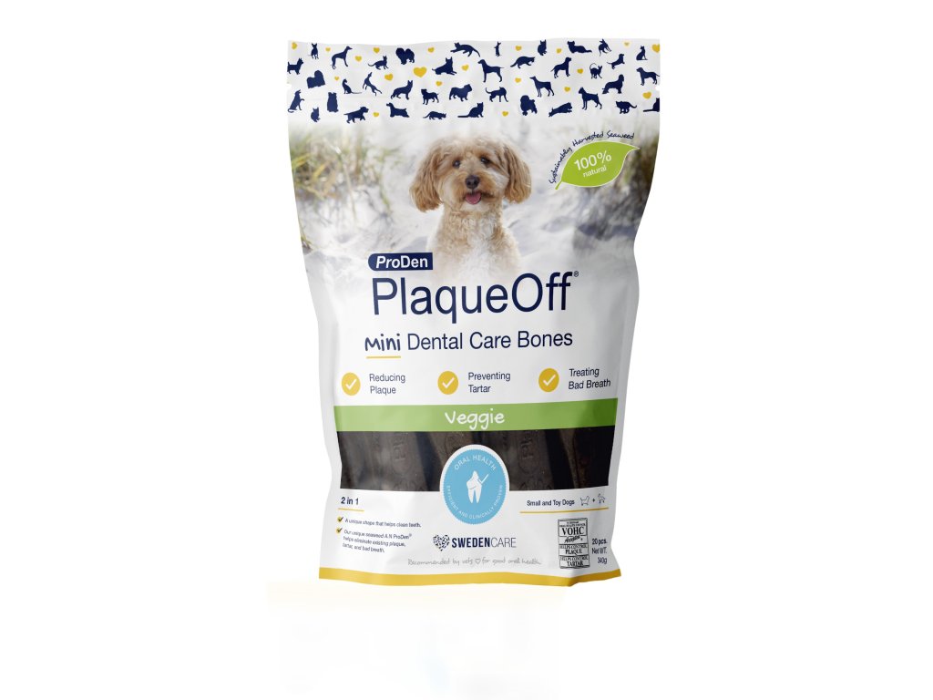 ProDen PlaqueOff® Mini Dental Bones jsou žvýkací kosti s osvědčeným práškem PlaqueOff® jako jednou ze složek. Pokud používáte denně, tento přírodní produkt vyrobený z řas může výrazně doplňovat běžnou zubní hygienu.