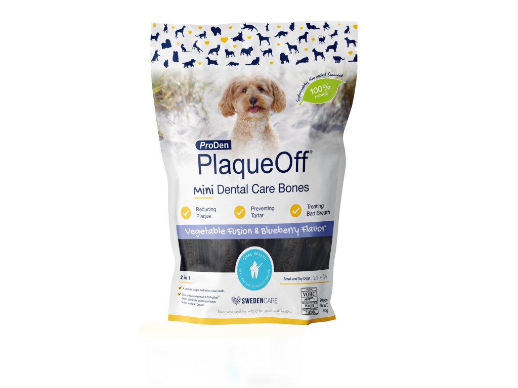 ProDen PlaqueOff® Mini Dental Bones jsou žvýkací kosti s osvědčeným práškem PlaqueOff® jako jednou ze složek. Pokud používáte denně, tento přírodní produkt vyrobený z řas může výrazně doplňovat běžnou zubní hygienu.
