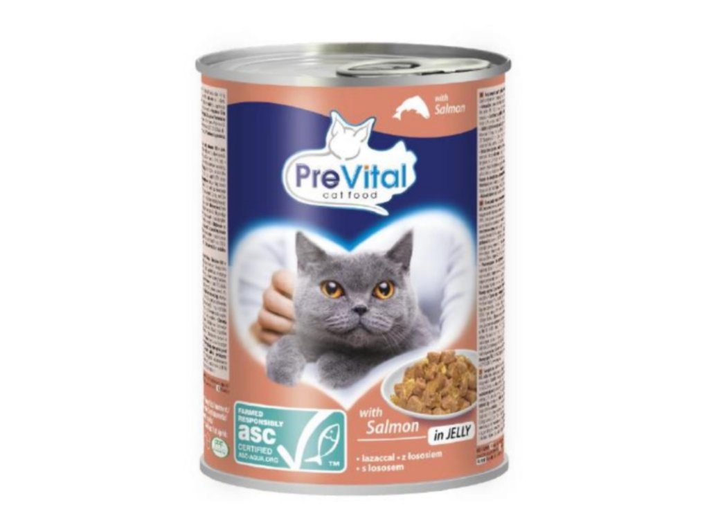 Kompletní krmivo pro dospělé kočky s lososem v želé.