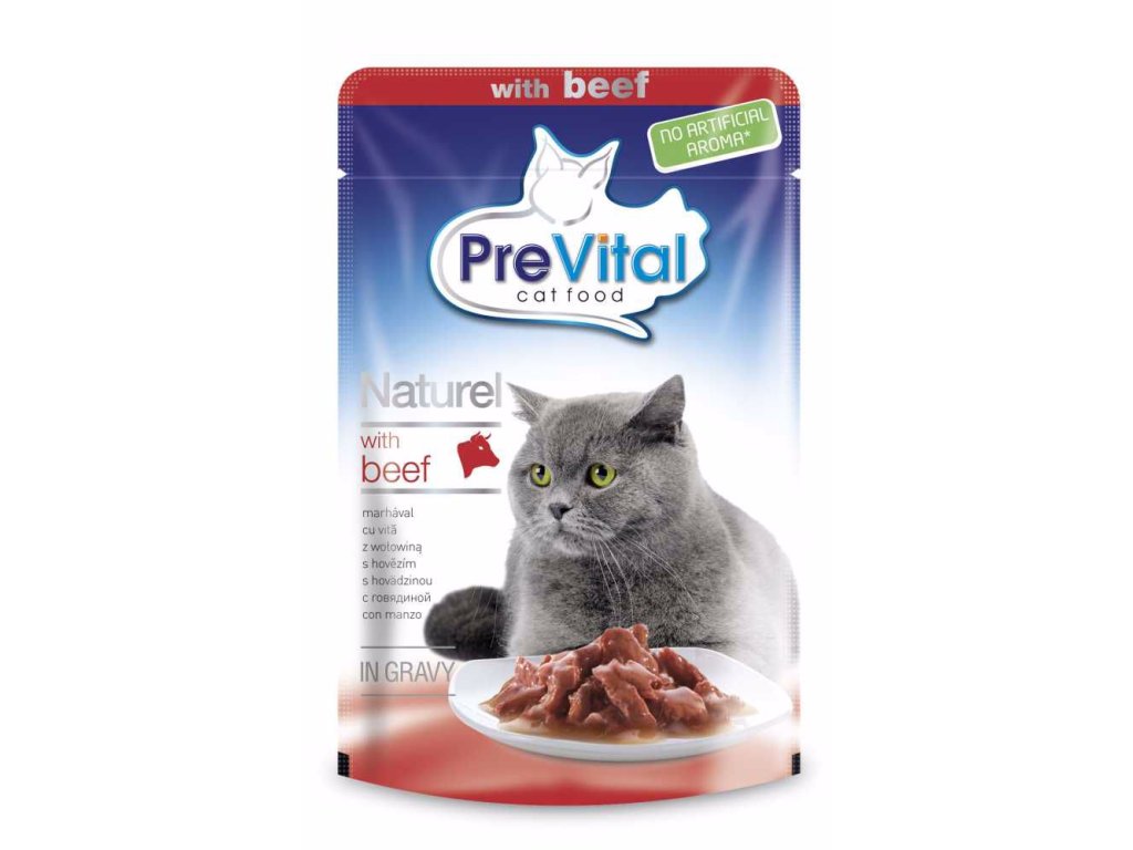 Kompletní mokré krmivo pro dospělé kočky s dušenými hovězími filetkami v omáčce.