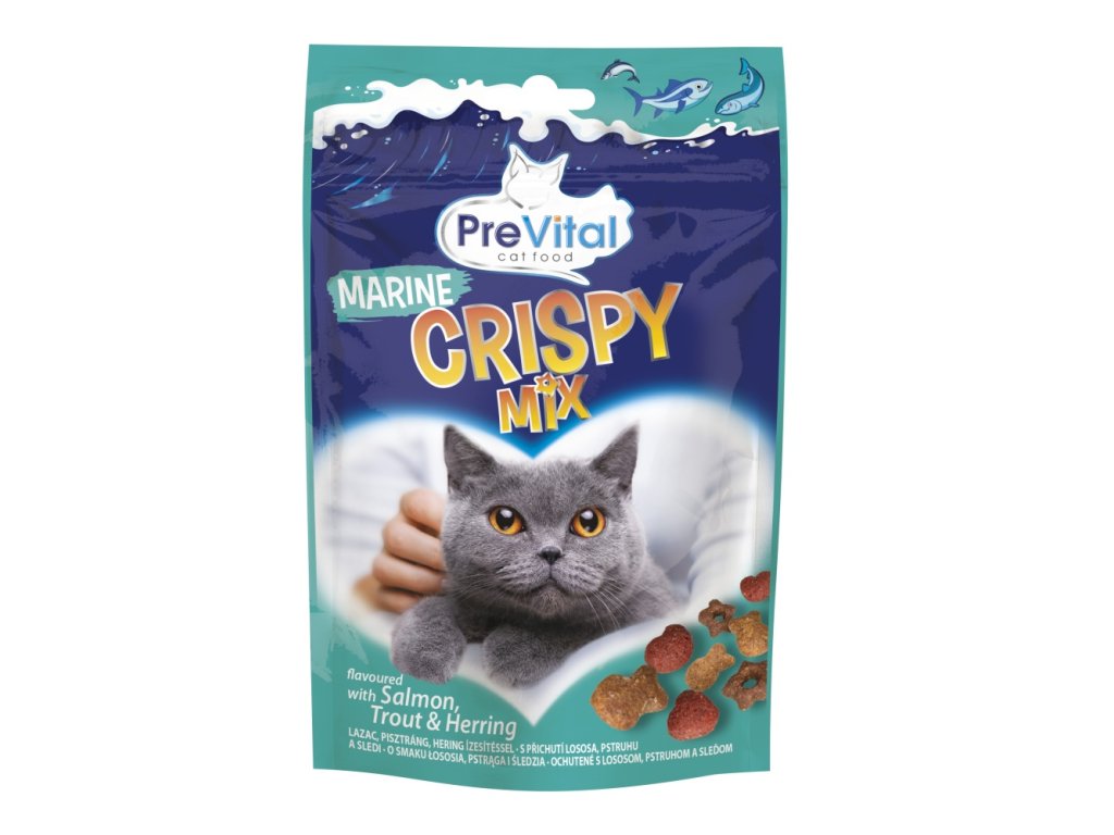 Pamlsek pro kočky ve formě křupavých granulí s rybí příchutí.