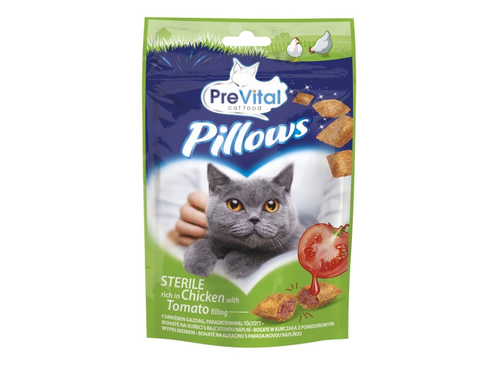 Lahodný pamlsek pro kočky ve tvaru polštářku s kuřecí příchutí, plněné sýrem.