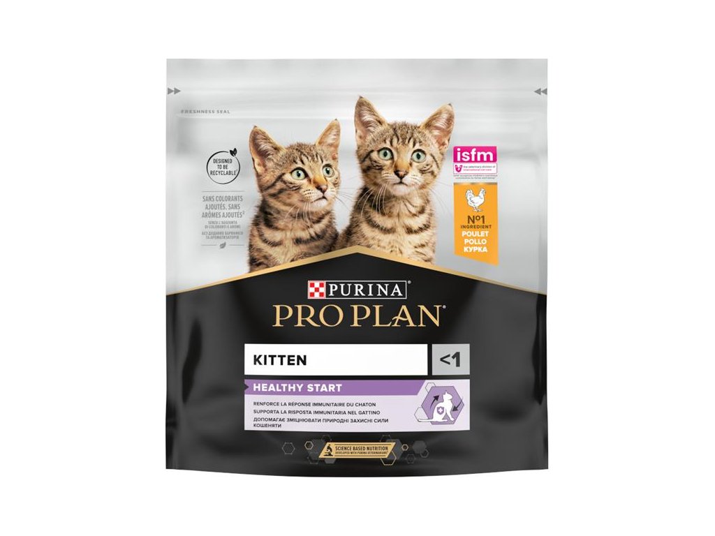 Krmiva Purina PRO PLAN obsahují specifické kombinace živin vyvinuté na vědeckém základě, které pozitivním způsobem přispívají ke zdravému rozvoji koťat. Tato receptura s vysokým podílem bílkovin obsahuje všechny esenciální živiny včetně vitaminů C a D, DHA a mlezivo. Vhodné také pro březí a kojící kočky a kastrovaná koťata.