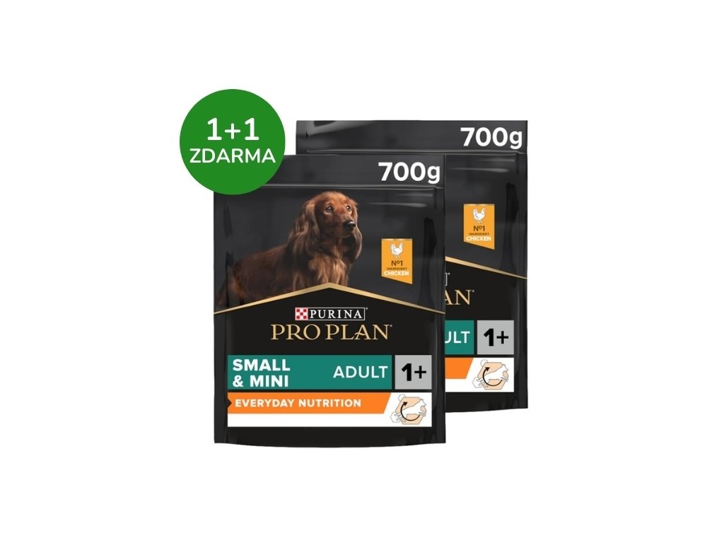 Krmivo Purina PRO PLAN® Everyday Nutrition SMALL&MINI ADULT bylo vyvinuto pro dospělé psy malých a trpasličích plemen (s hmotností do 10 kg). Granule obsahují vitamín D, minerální látky a specifické množství omega-3 mastných kyselin (0,3 %), které přispívají ke zdraví zubů a dásní. Krmivo má vysoký podíl kvalitního kuřecího, a tak zajišťuje optimální výživu psů malých a trpasličích plemen od 12 měsíců až do 9 let. Následně byste měli přejít na produkty z řady Age Defence.