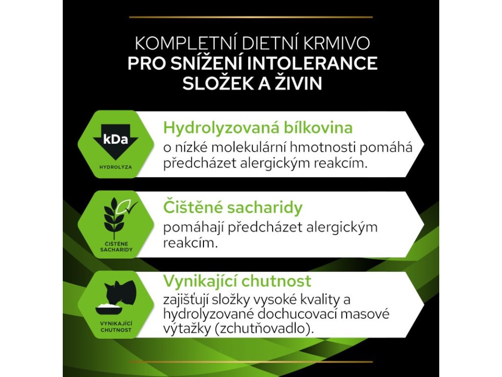 Purina PPVD Feline - HA Hypoallergenic je kompletní veterinární hypoalergenní dietní krmivo pro diagnostiku a nutriční management alergie na krmivo u koťat i dospělých koček. Některé kočky mohou trpět alergií na krmivo, která se může projevit kožními příznaky a/nebo podrážděním trávicího traktu. Feline HA Hypoallergenic obsahuje bílkoviny, které byly rozštěpeny (hydrolyzovány) na velmi malé částečky, a které nejsou schopny vyvolat alergickou reakci. Díky tomu je krmivo vhodné k eliminační dietě, která se používá k diagnostice alergie na krmivo. Obsahuje také purifikovaný zdroj sacharidů.