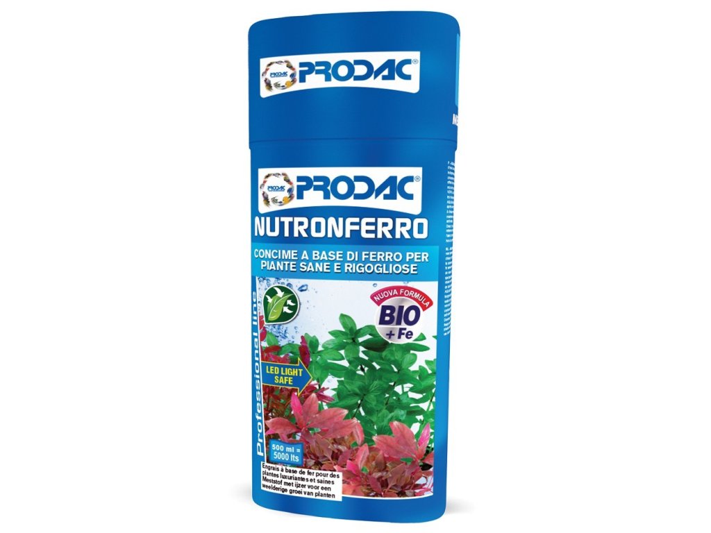 Nová vylepšená formule akvarijního hnojícího přípravku, vhodného především pro rostliny slabé a křehké se sklonem ke žloutnutí kvůli nedostatku živin. Nutronferro Roztok s upraveným množstvím a složením železa (navýšené množství mg/l). Nové dávkování: 1 ml na každých 10l vody (aplikujte 1x týdně) - doporučuje se kombinovat s PRODAC NUTRONFLORA Balení: 500 ml